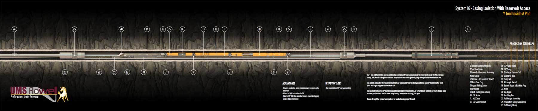 The Y‐tool and Pod system can be combined as a single unit, to provide access to the reservoir through the Y‐Tool bypass tubing, and provide casing isolation from the produced well fluids by having the y‐tool bypass system inside the Pod.