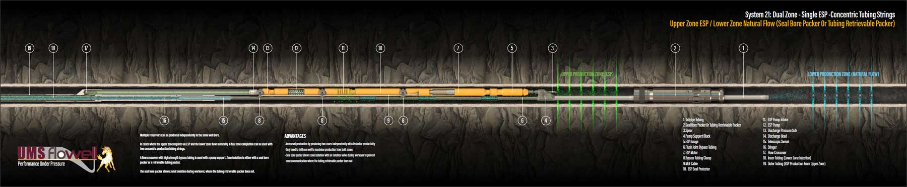 System 21: Dual Zone - Single ESP -Concentric Tubing Strings