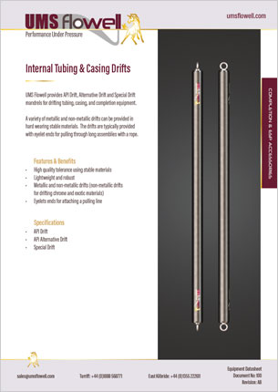 UMS Flowell provides API Drift, Alternative Drift and Special Drift mandrels for drifting tubing, casing, and completion equipment.