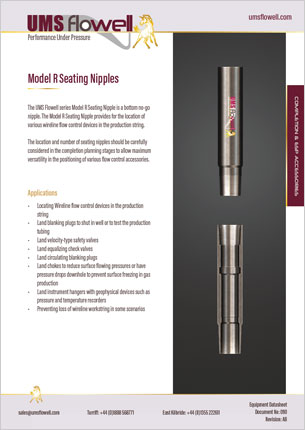 The Model R Seating Nipple provides for the location of various wireline flow control devices in the production string.