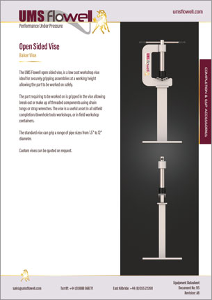 The UMS Flowell open sided vise, is a low cost workshop vise ideal for securely gripping assemblies at a working height allowing the part to be worked on safely.